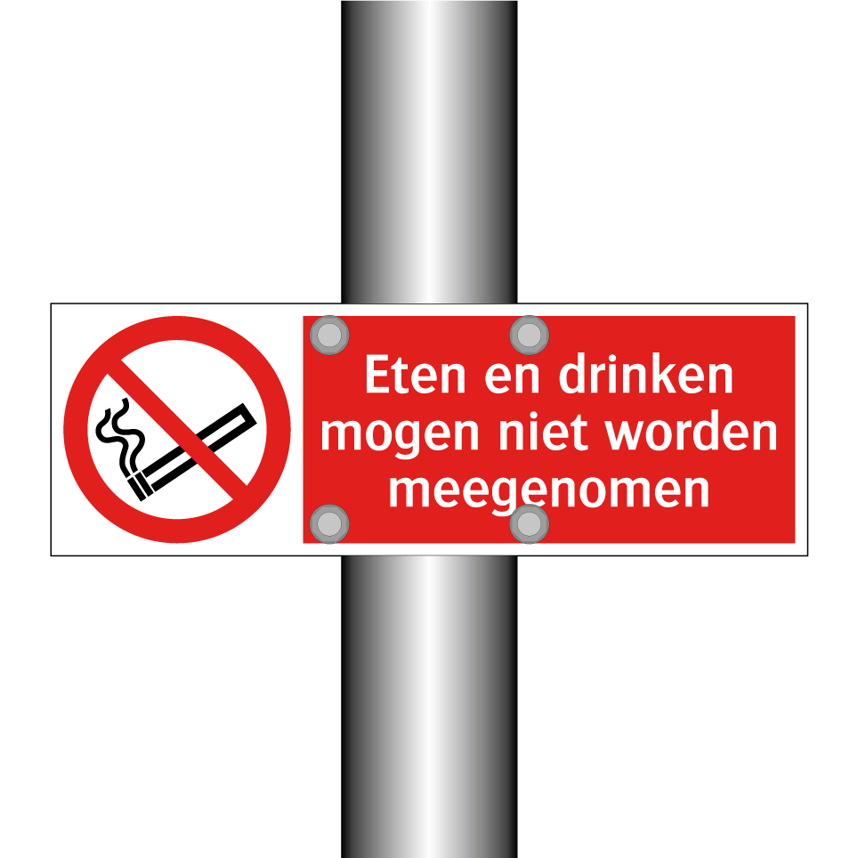 Deze opvallende verbodsbord is ideaal voor het handhaven van regels op diverse locaties. Het bord is ontworpen om duidelijk te communiceren dat het niet toegestaan is om eten en drinken mee te nemen. Dit maakt het perfect voor gebruik in openbare ruimtes zoals musea, bibliotheken, en sportfaciliteiten waar het belangrijk is om een schone en ordelijke omgeving te behouden. Door de heldere rode achtergrond en witte tekst met een duidelijke symbool, trekt het bord onmiddellijk de aandacht van bezoekers en zorgt het voor naleving van de huisregels. Plaats dit bord op strategische plekken bij ingangen of in wachtruimtes om ongewenst gedrag te voorkomen en een aangename sfeer te behouden.