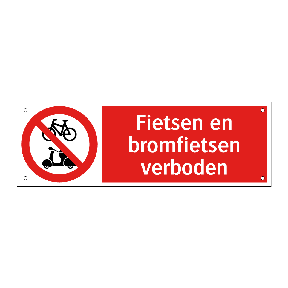 Verbodsbord met de tekst Fietsen en bromfietsen verboden