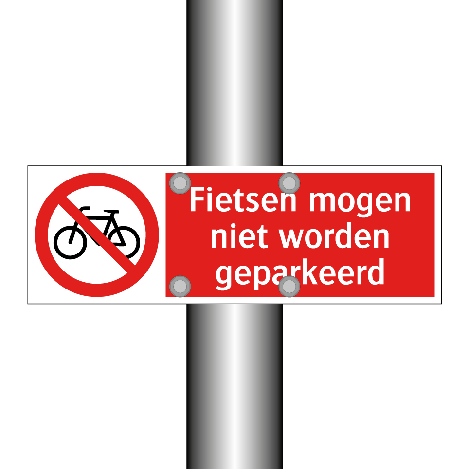 Dit verbodsbord is een essentiële toevoeging voor elke locatie waar fietsen niet gewenst zijn. Met zijn opvallende rode achtergrond en duidelijke witte tekst, zorgt dit bord ervoor dat bezoekers direct begrijpen dat fietsen hier niet geparkeerd mogen worden. Ideaal voor gebruik bij ingangen van gebouwen, smalle doorgangen of drukke winkelstraten, waar het belangrijk is om de doorgang vrij te houden. Dit bord helpt niet alleen bij het handhaven van de orde, maar draagt ook bij aan de veiligheid van voetgangers. Plaats het op strategische plekken om ongewenst fietsparkeren effectief te voorkomen.
