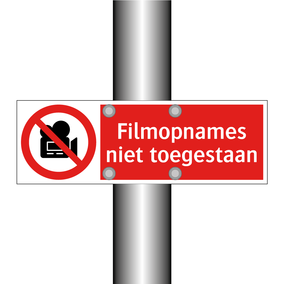 Verbodsbord met de tekst Filmopnames niet toegestaan