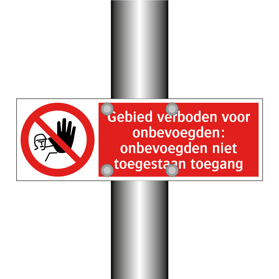 Verbodsbord met de tekst Gebied verboden voor onbevoegden: onbevoegden niet toegestaan toegang