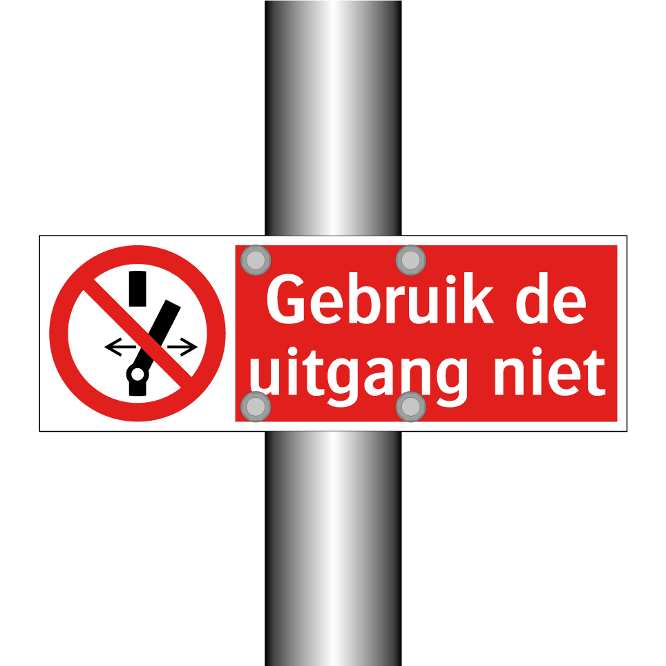Verbodsbord met de tekst Gebruik de uitgang niet