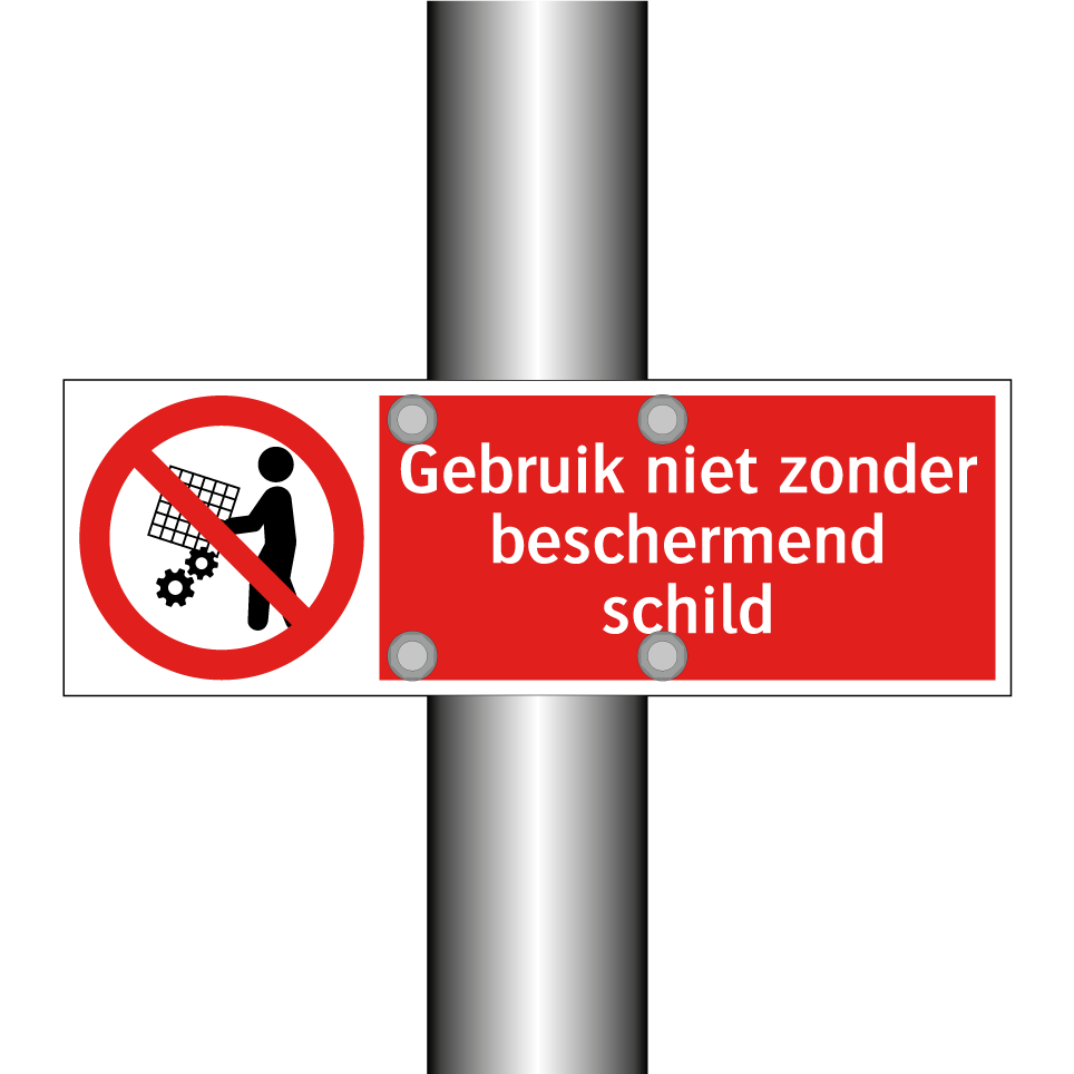 Verbodsbord met de tekst Gebruik niet zonder beschermend schild