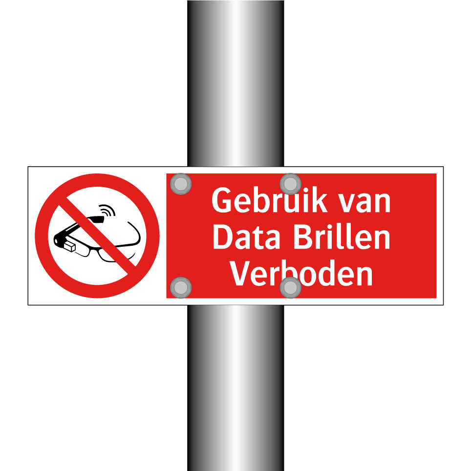 Verbodsbord met de tekst Gebruik van Data Brillen Verboden