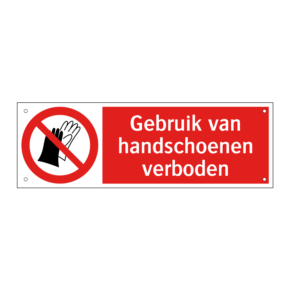 Verbodsbord met de tekst Gebruik van handschoenen verboden