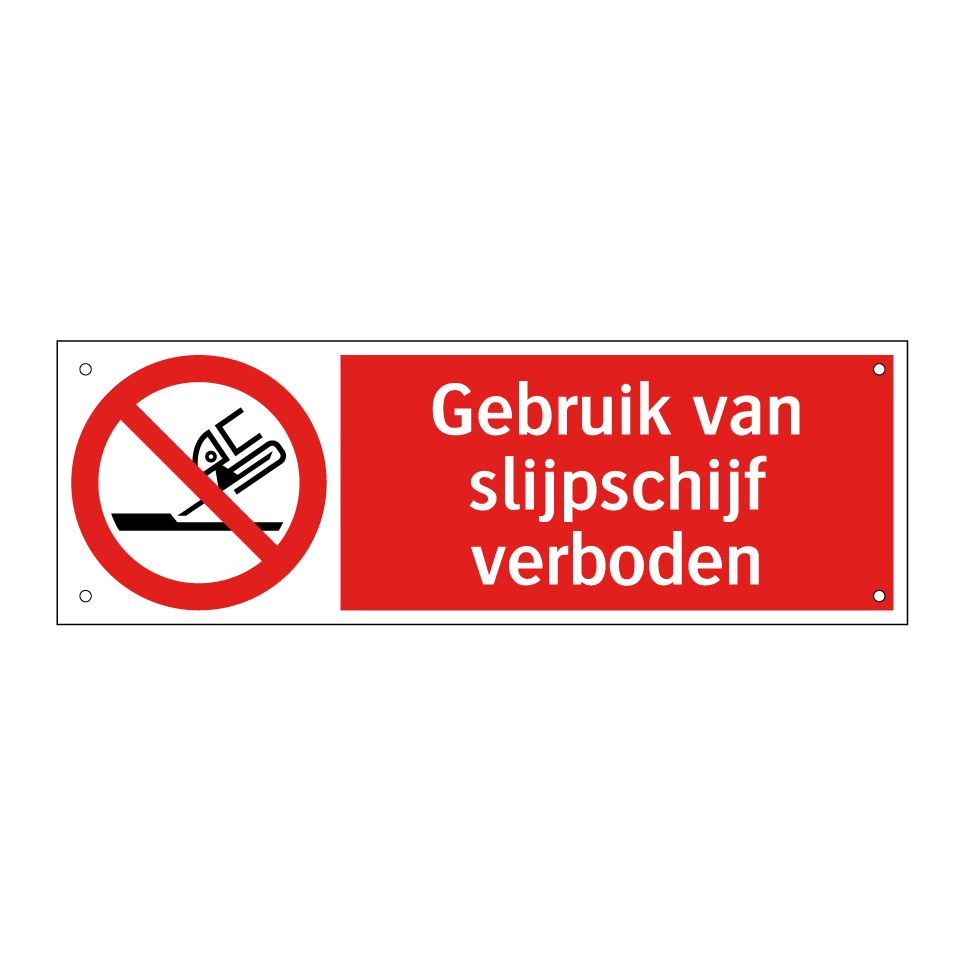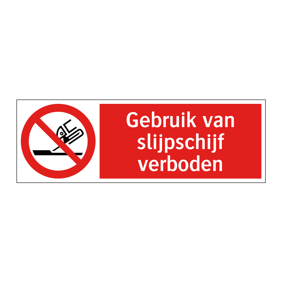 Verbodsbord met de tekst Gebruik van slijpschijf verboden