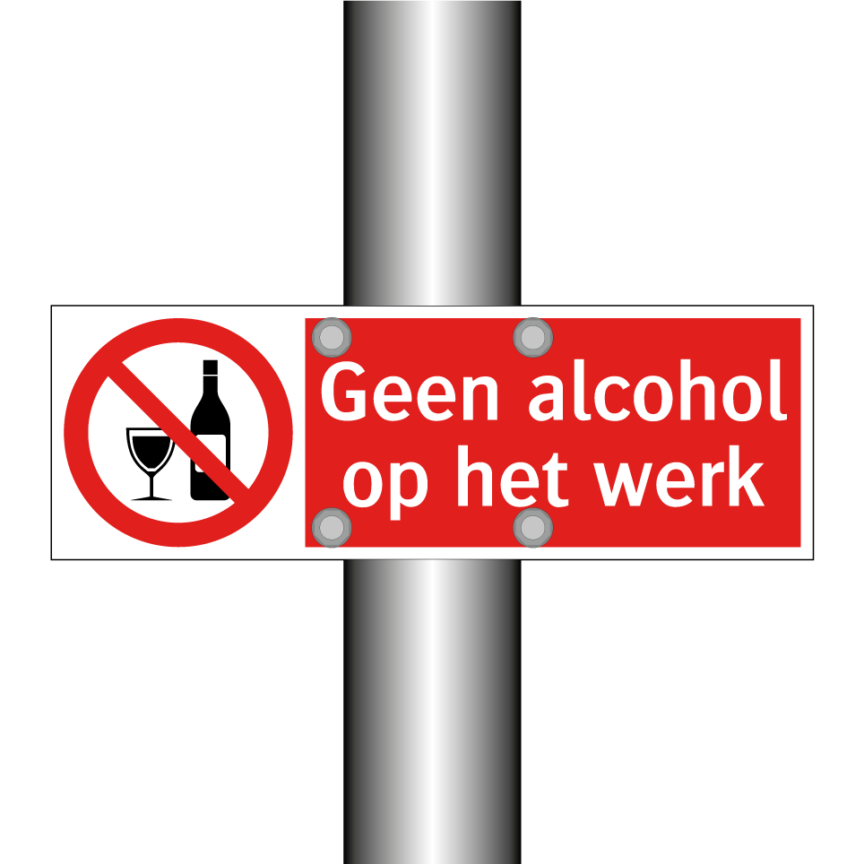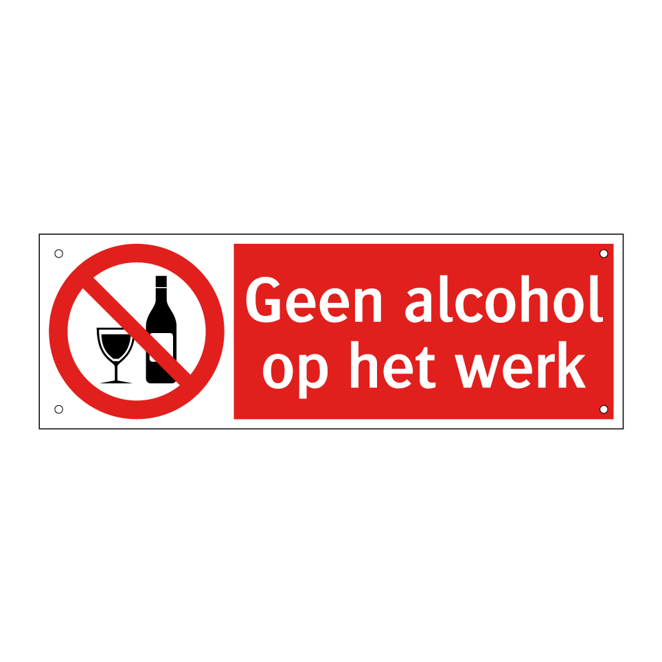 Deze opvallende verbodsbord is essentieel voor een veilige en professionele werkomgeving. Het bord is ontworpen om werknemers en bezoekers te herinneren aan het belang van een alcoholvrije werkplek. Ideaal voor gebruik in kantoren, fabrieken, magazijnen en andere werkruimtes waar veiligheid en productiviteit voorop staan. Door de strategische plaatsing bij ingangen, kantines of gemeenschappelijke ruimtes, zorgt dit bord ervoor dat de boodschap duidelijk en zichtbaar is voor iedereen. Het gebruik van een heldere rode achtergrond met een witte tekst en symbool maakt het bord gemakkelijk herkenbaar en effectief in het communiceren van het verbod.