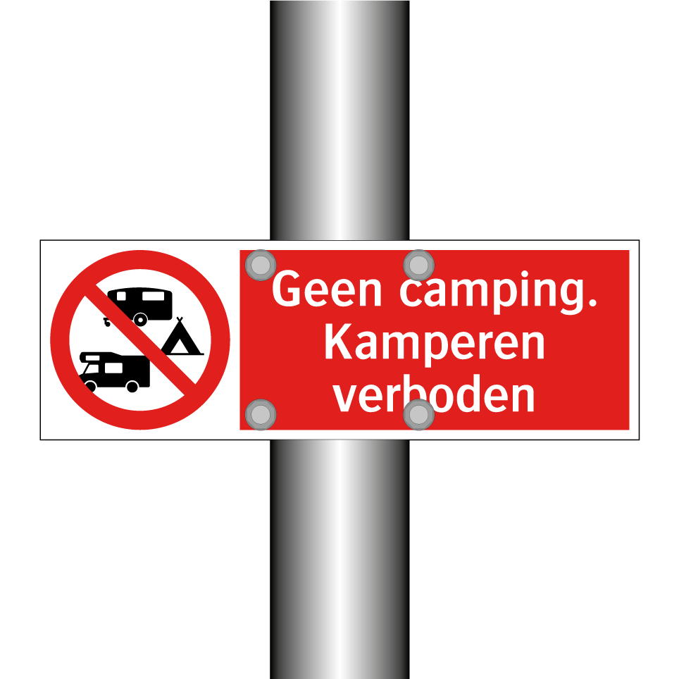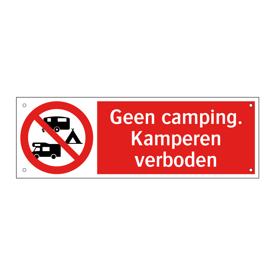 Verbodsbord met de tekst Geen camping. Kamperen verboden