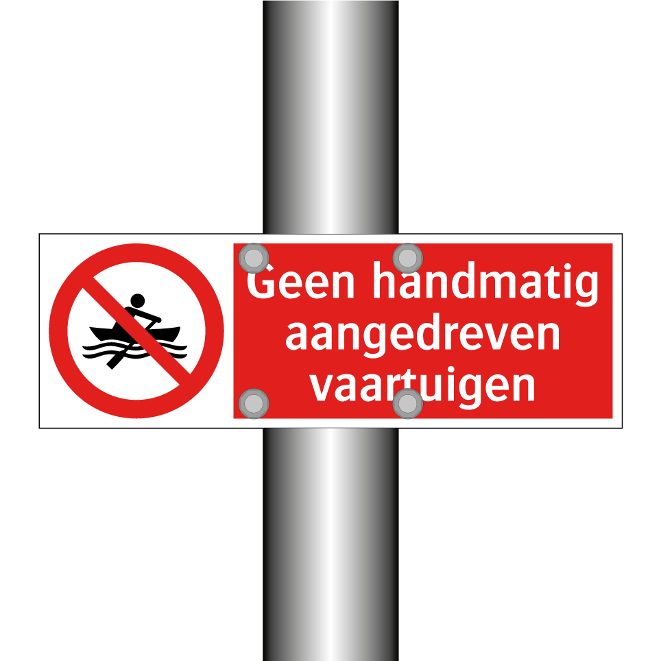 Deze opvallende verbodsbord is essentieel voor het handhaven van de veiligheid en orde op het water. Het bord is ideaal voor gebruik in gebieden waar handmatig aangedreven vaartuigen niet zijn toegestaan, zoals drukke havens, smalle kanalen of beschermde natuurgebieden. Door de duidelijke rode achtergrond en witte tekst met een herkenbaar symbool, is het bord gemakkelijk te begrijpen voor iedereen. Plaats het bord op strategische locaties zoals aanlegsteigers, sluizen of bij de ingang van vaarverboden zones om ervoor te zorgen dat de regels duidelijk worden gecommuniceerd. Dit verbodsbord helpt bij het voorkomen van ongewenste situaties en draagt bij aan een veilige en georganiseerde omgeving.