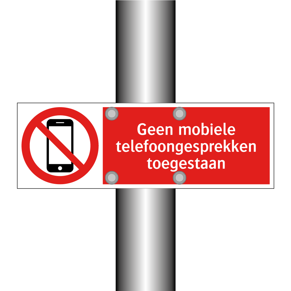 Verbodsbord met de tekst Geen mobiele telefoongesprekken toegestaan