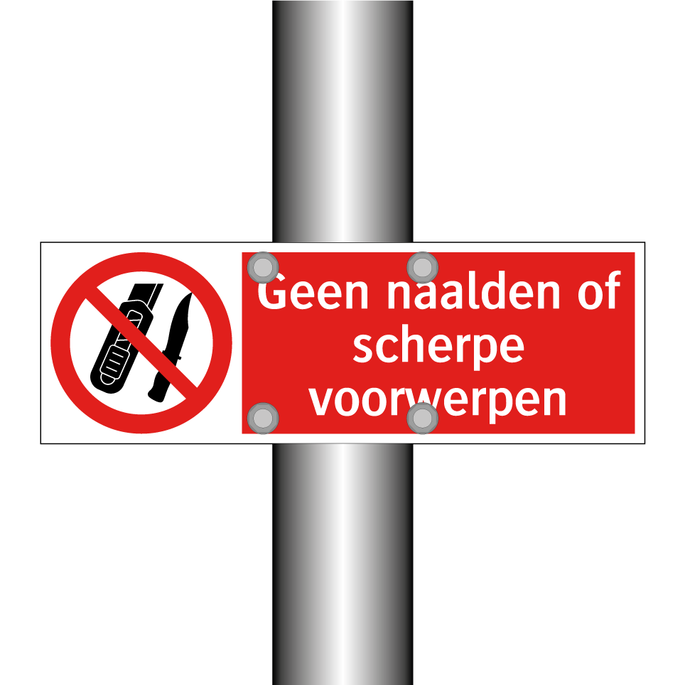 Verbodsbord met de tekst Geen naalden of scherpe voorwerpen
