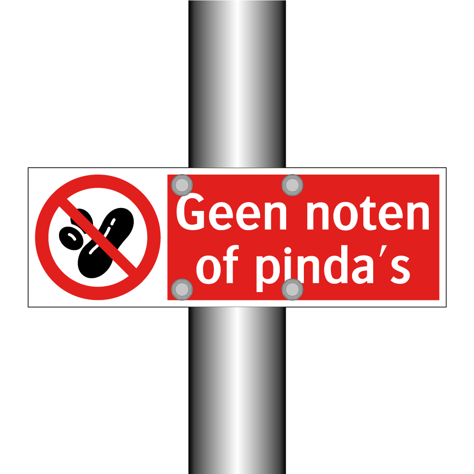 Deze opvallende verbodsbord is essentieel voor het waarborgen van een veilige omgeving. Het is ideaal voor gebruik in ruimtes waar het cruciaal is om de aanwezigheid van noten en pinda's te beperken, zoals scholen, kinderdagverblijven en kantoren met allergiegevoelige medewerkers. Door de duidelijke rode achtergrond en witte tekst trekt het bord onmiddellijk de aandacht en communiceert het effectief het verbod. Plaats deze waarschuwingsbord bij ingangen, keukens of gemeenschappelijke ruimtes om ervoor te zorgen dat iedereen op de hoogte is van de regels. Het helpt niet alleen bij het voorkomen van allergische reacties, maar draagt ook bij aan een zorgeloze en veilige omgeving voor iedereen.