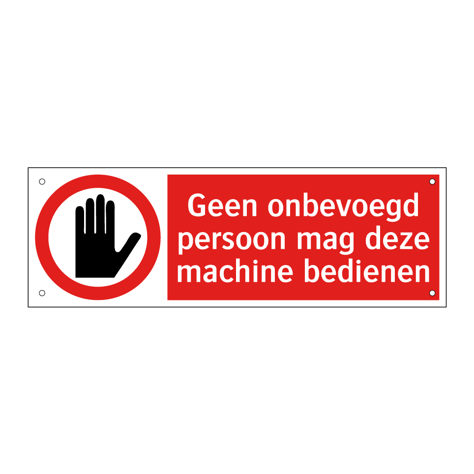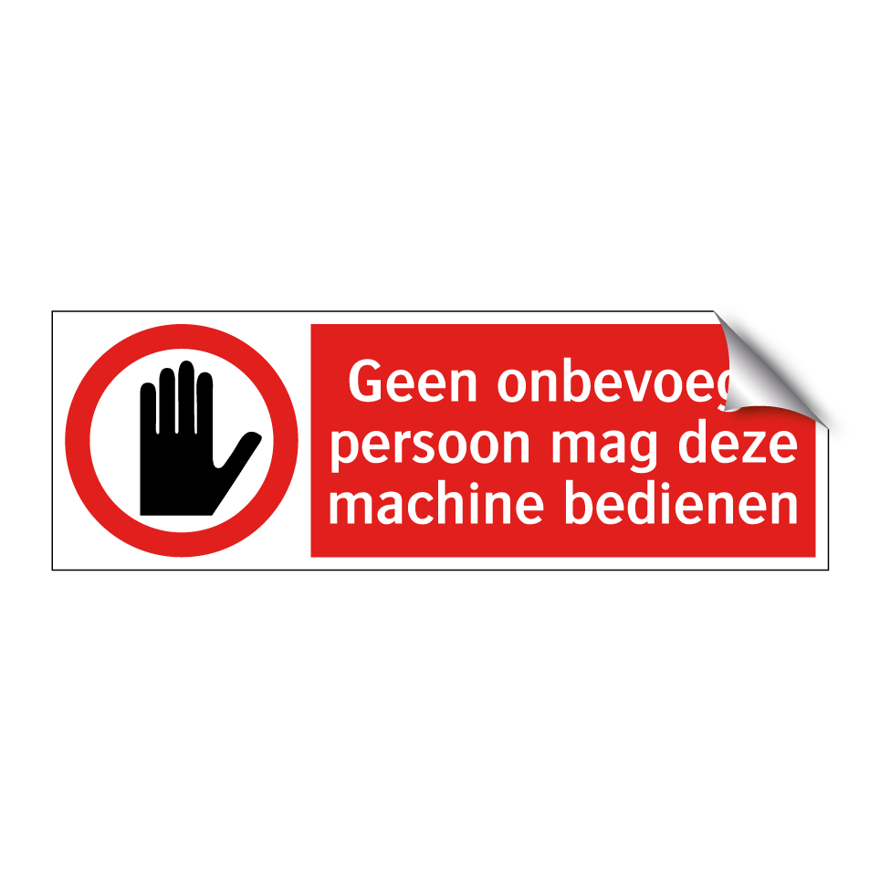 Verbodsbord met de tekst Geen onbevoegd persoon mag deze machine bedienen