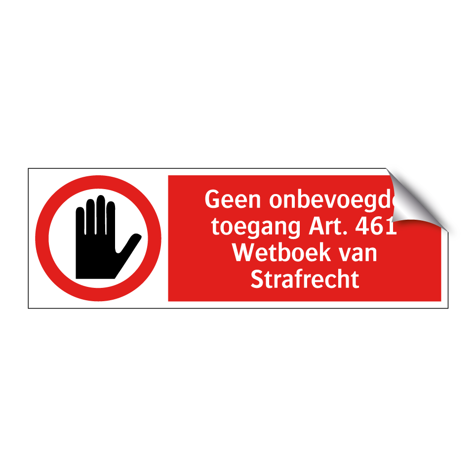 Verbodsbord met de tekst Geen onbevoegde toegang Art. 461 Wetboek van Strafrecht