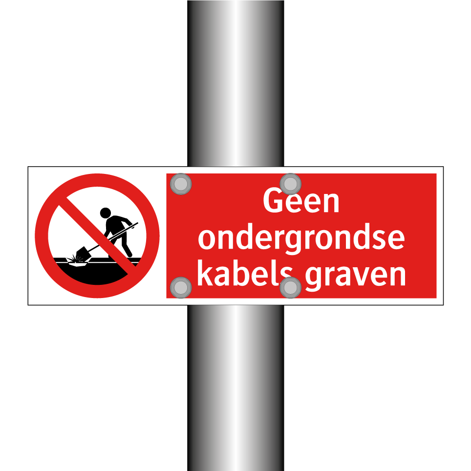 Verbodsbord met de tekst Geen ondergrondse kabels graven
