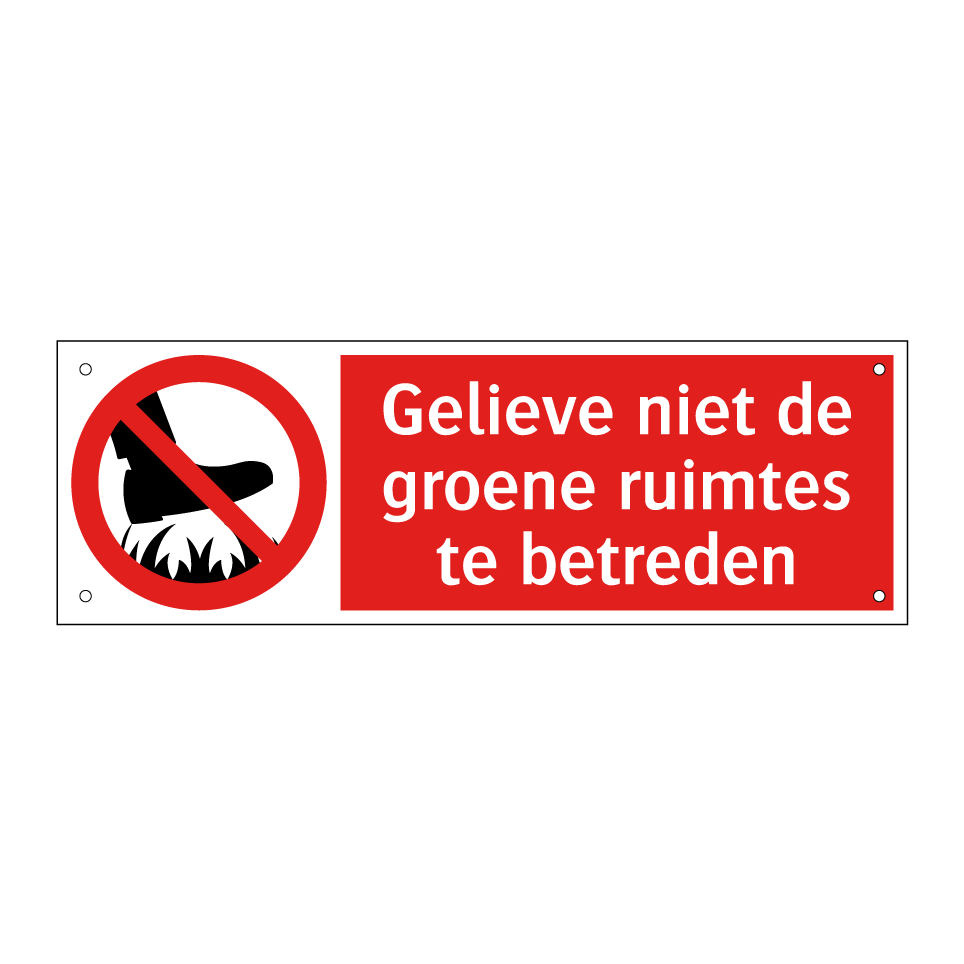 Verbodsbord met de tekst Gelieve niet de groene ruimtes te betreden