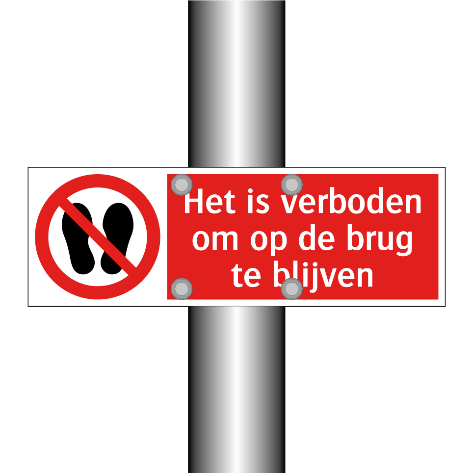 Verbodsbord met de tekst Het is verboden om op de brug te blijven