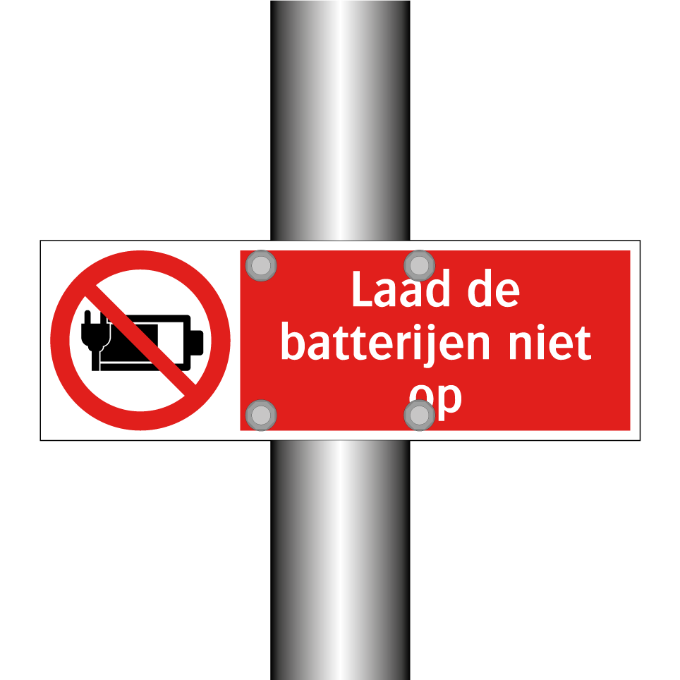 Verbodsbord met de tekst Laad de batterijen niet op