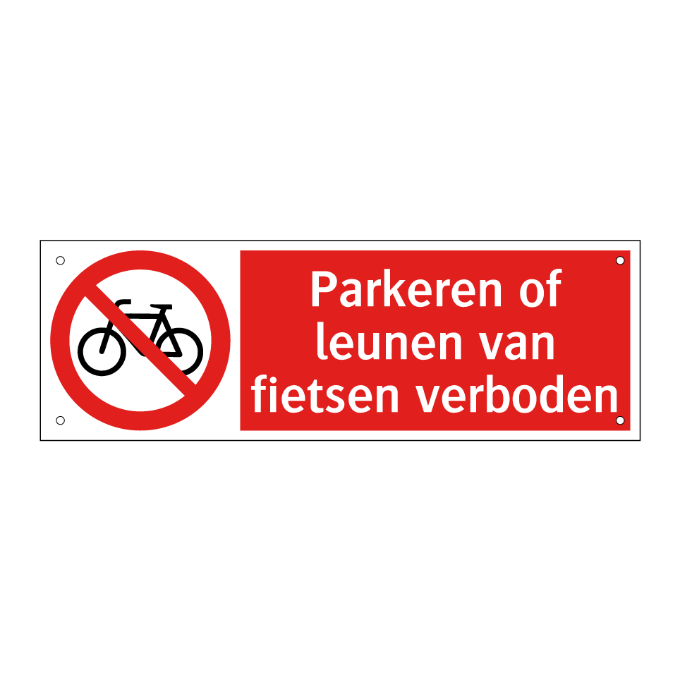 Verbodsbord met de tekst Parkeren of leunen van fietsen verboden