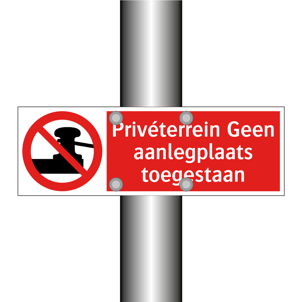 Verbodsbord met de tekst Privéterrein Geen aanlegplaats toegestaan