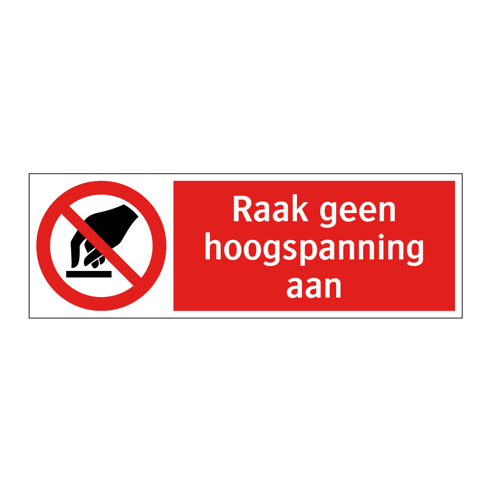Verbodsbord met de tekst Raak geen hoogspanning aan