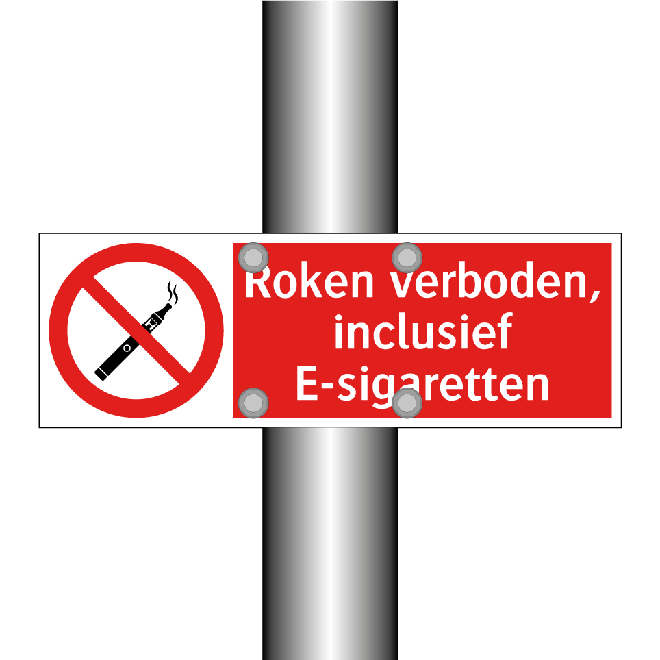 Verbodsbord met de tekst Roken verboden, inclusief E-sigaretten