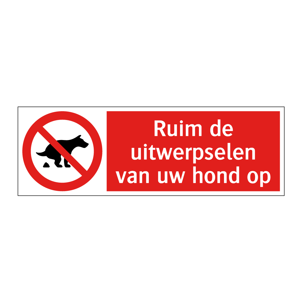 Verbodsbord met de tekst Ruim de uitwerpselen van uw hond op