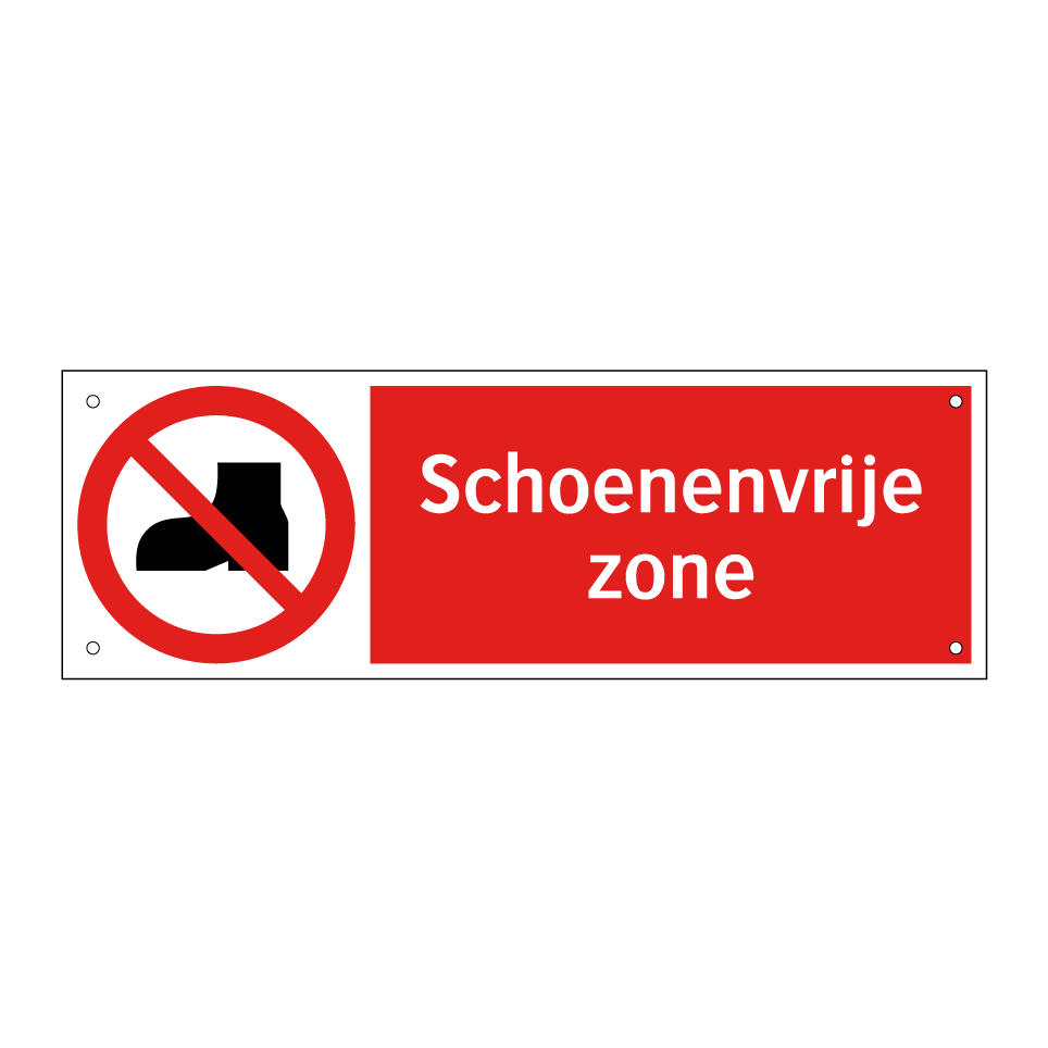 Verbodsbord met de tekst Schoenenvrije zone