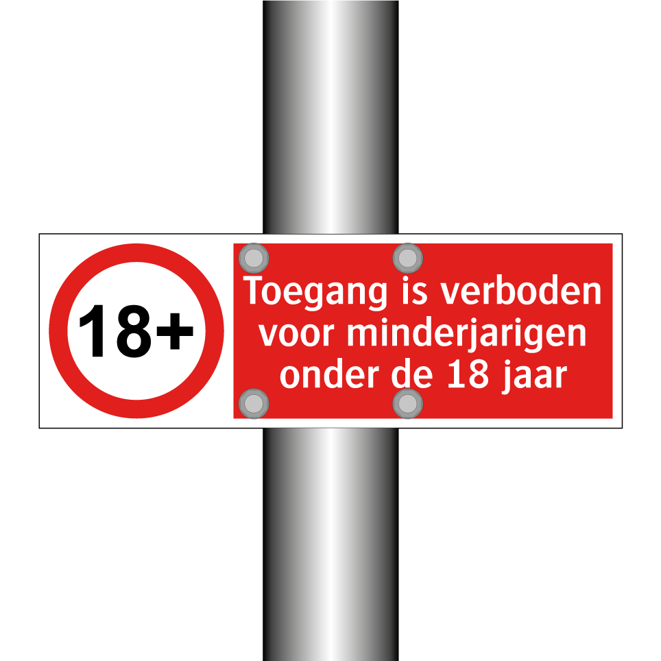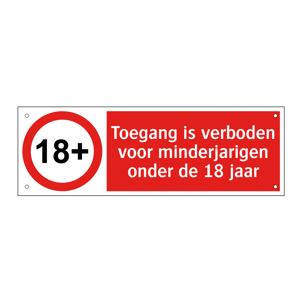 Verbodsbord met de tekst Toegang is verboden voor minderjarigen onder de 18 jaar