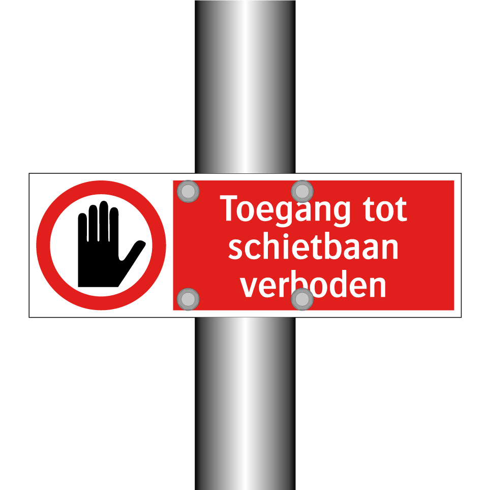 Deze opvallende verbodsbord is essentieel voor het waarborgen van de veiligheid op schietbanen. Met zijn rode achtergrond en duidelijke witte tekst, trekt het onmiddellijk de aandacht en communiceert het een cruciaal verbod. Dit bord is ideaal voor gebruik bij ingangen van schietbanen, om onbevoegden te waarschuwen en toegang te beperken. Het kan strategisch worden geplaatst bij poorten, hekken of andere toegangswegen om ervoor te zorgen dat alleen geautoriseerde personen toegang krijgen. Door het gebruik van dit bord wordt de veiligheid verhoogd en worden potentiële risico's geminimaliseerd. Perfect voor schietverenigingen, trainingsfaciliteiten en andere locaties waar schietactiviteiten plaatsvinden.