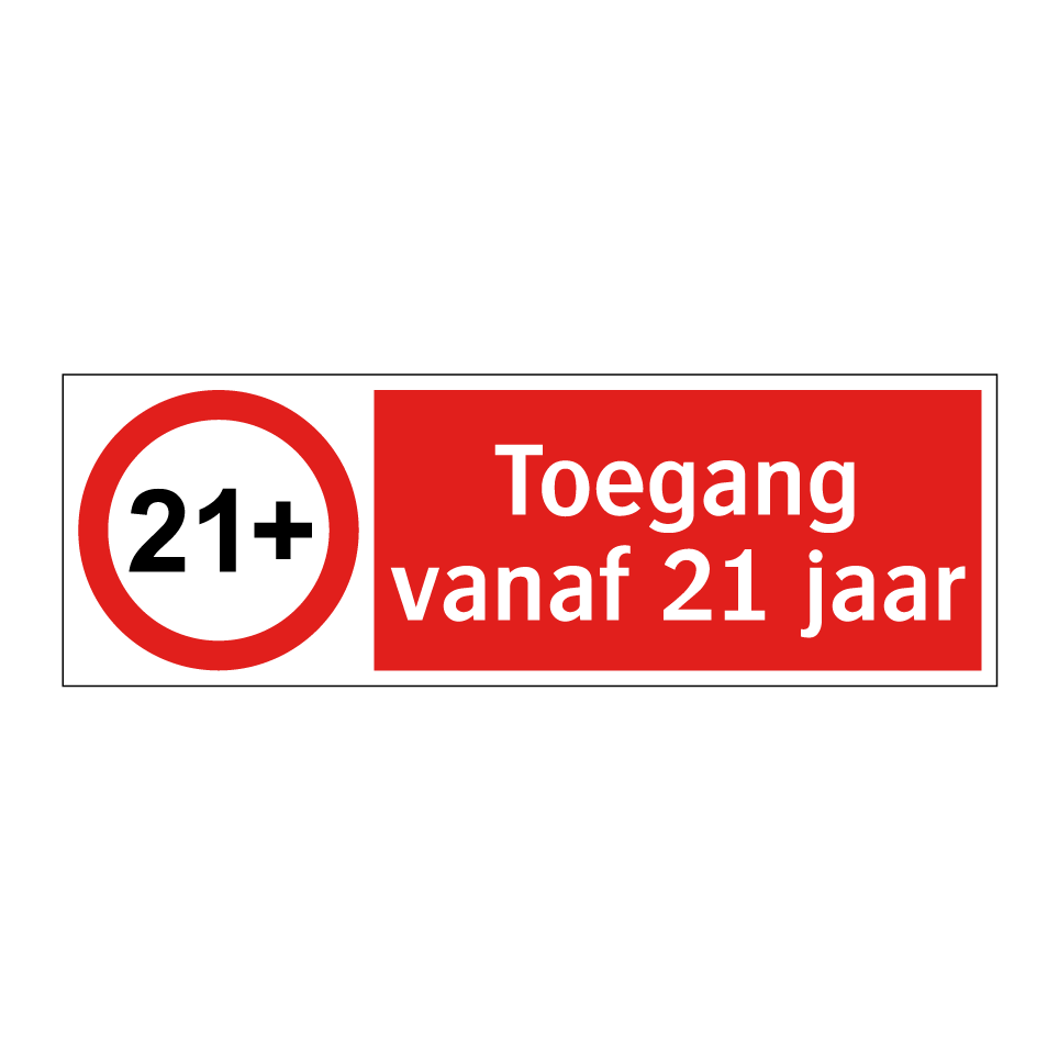 Verbodsbord met de tekst Toegang vanaf 21 jaar