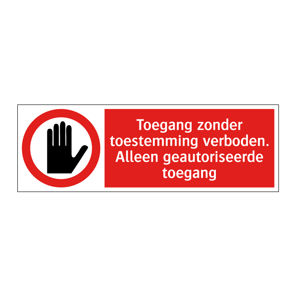 Verbodsbord met de tekst Toegang zonder toestemming verboden. Alleen geautoriseerde toegang