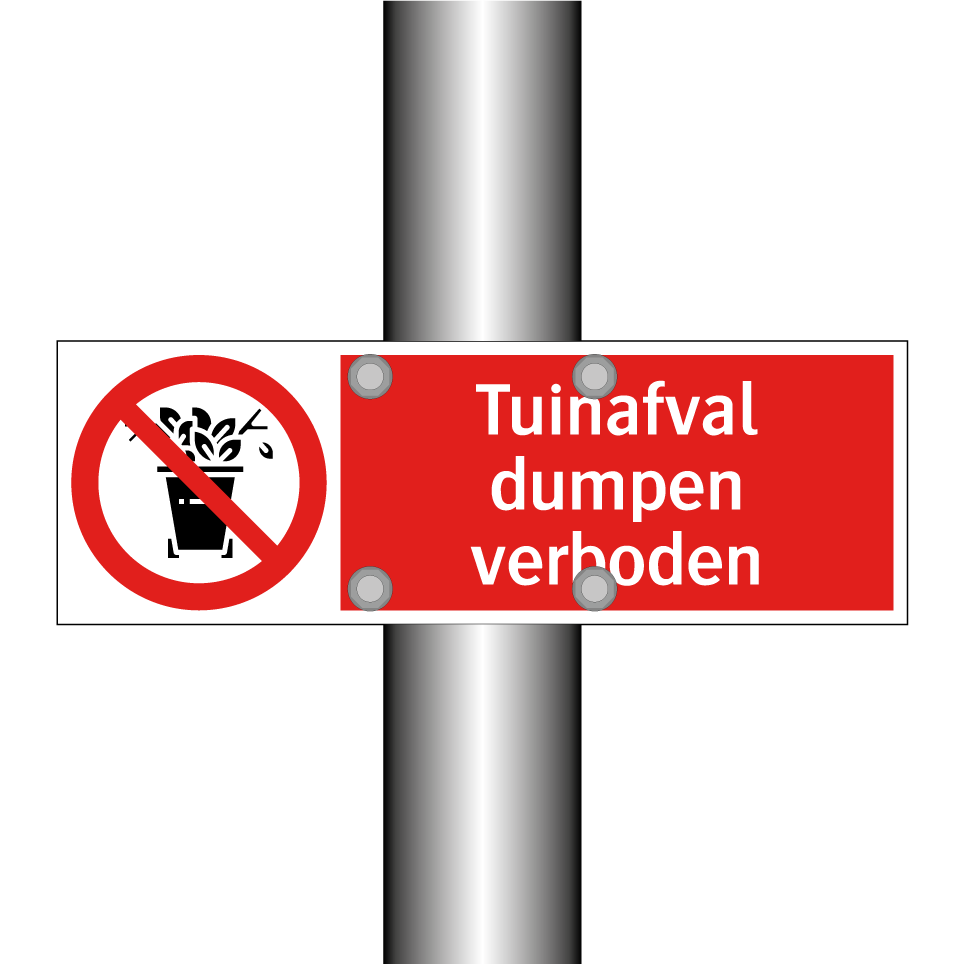 Verbodsbord met de tekst Tuinafval dumpen verboden