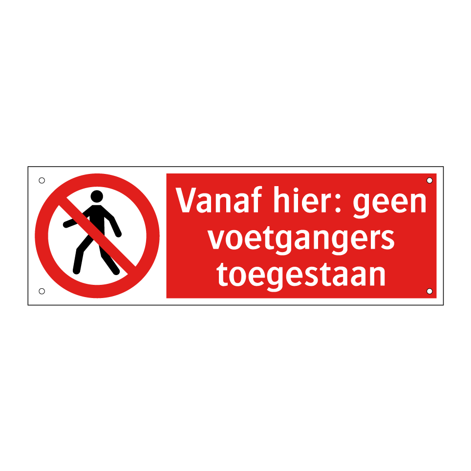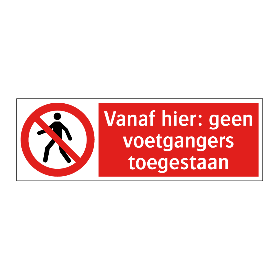 Verbodsbord met de tekst Vanaf hier: geen voetgangers toegestaan