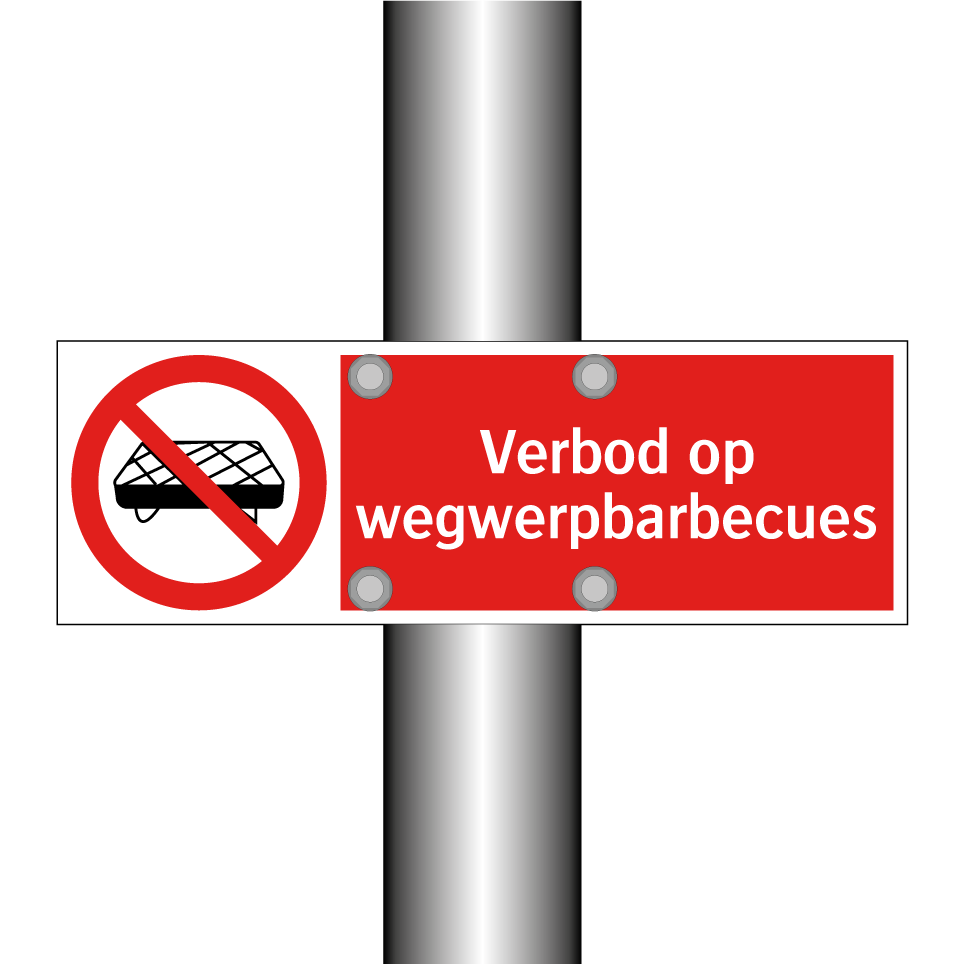 Verbodsbord met de tekst Verbod op wegwerpbarbecues