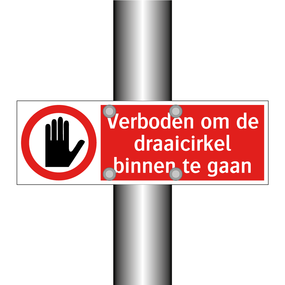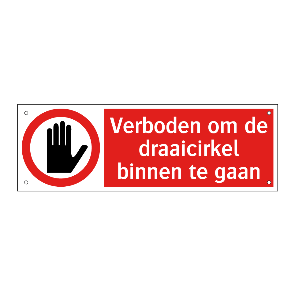 Verbodsbord met de tekst Verboden om de draaicirkel binnen te gaan