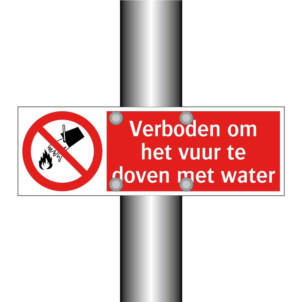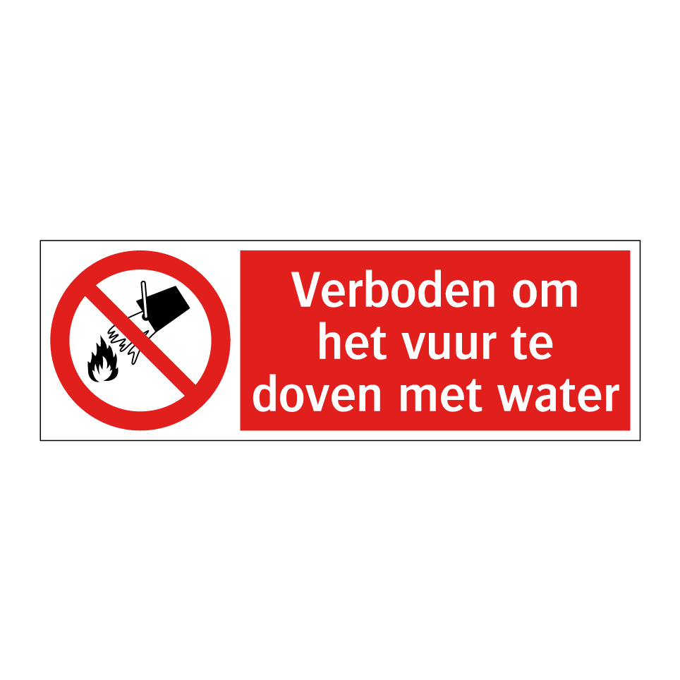 Verbodsbord met de tekst Verboden om het vuur te doven met water