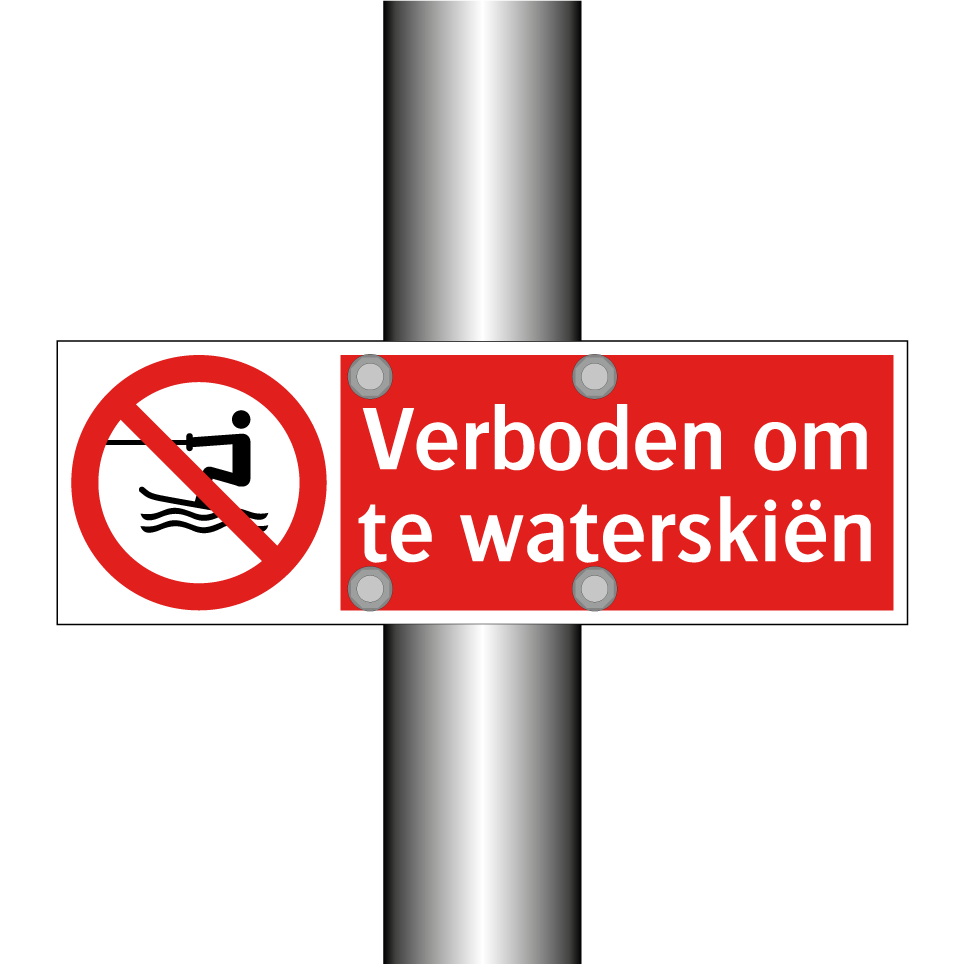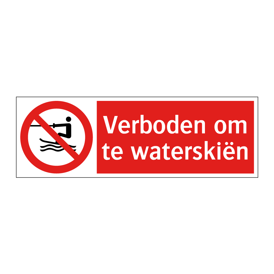 Deze opvallende verbodsbord is essentieel voor het waarborgen van de veiligheid op het water. Het bord, met zijn rode achtergrond en duidelijke witte tekst, is ideaal voor gebruik in gebieden waar waterskiën niet is toegestaan. Plaats het bij meren, rivieren of andere waterwegen om bezoekers te informeren en ongewenste activiteiten te voorkomen. Dit waarschuwingsbord is een onmisbaar hulpmiddel voor jachthavens, recreatiegebieden en natuurreservaten. Door het strategisch te positioneren, helpt het om de rust en veiligheid van het gebied te behouden. Zorg ervoor dat iedereen op de hoogte is van de regels met dit duidelijke en effectieve verbodsbord.