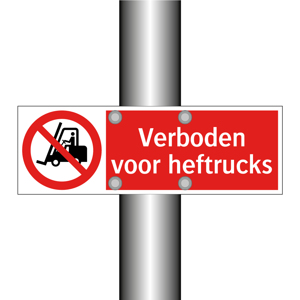 Deze opvallende verbodsbord is essentieel voor het waarborgen van de veiligheid in uw werkomgeving. Het bord met een rode achtergrond en witte tekst, aangevuld met een duidelijke symbool, waarschuwt effectief tegen het gebruik van heftrucks in specifieke zones. Ideaal voor gebruik in magazijnen, fabrieken en andere industriële omgevingen waar heftrucks niet zijn toegestaan. Door het strategisch plaatsen van dit bord op toegangswegen, laadperrons of opslagruimtes, voorkomt u ongelukken en bevordert u een veilige werkomgeving. Dit verbodsbord is een onmisbaar onderdeel van uw veiligheidsmaatregelen en helpt bij het handhaven van de regels op de werkvloer.