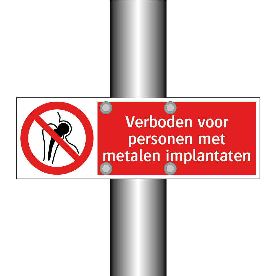 Verbodsbord met de tekst Verboden voor personen met metalen implantaten