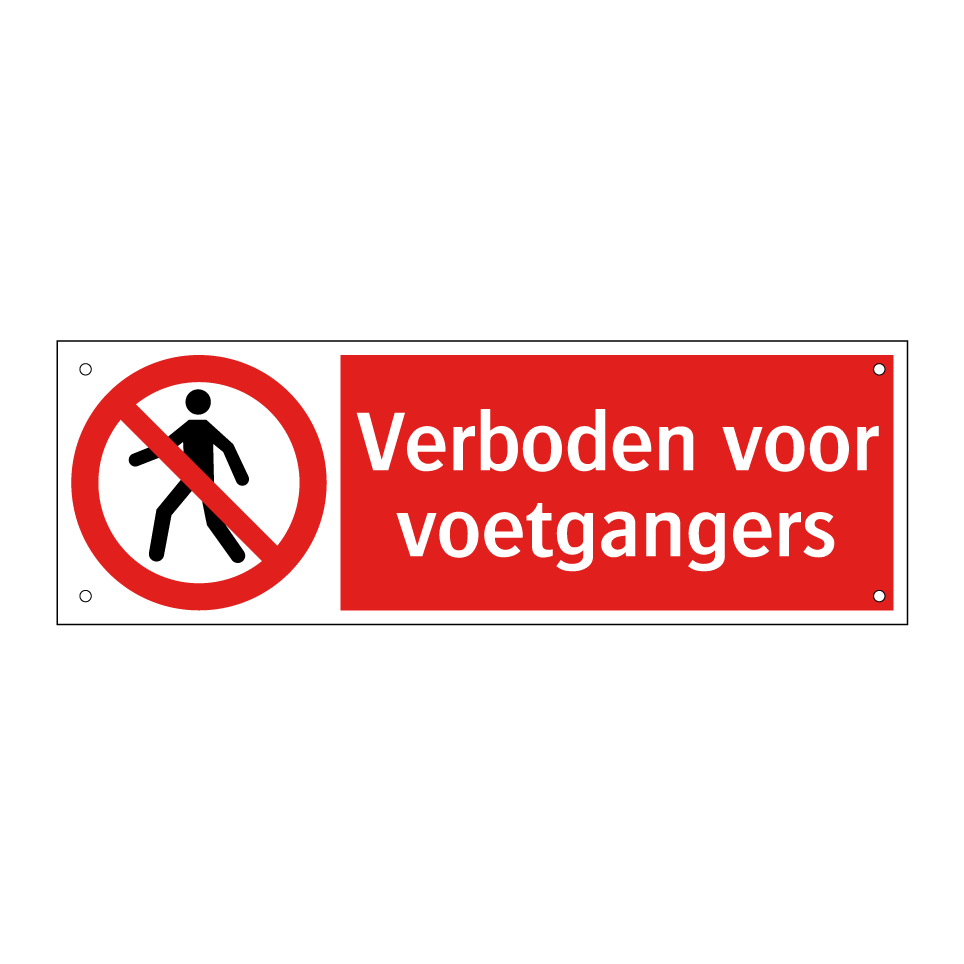 Deze opvallende verbodsbord is essentieel voor het waarborgen van de veiligheid in verschillende omgevingen. Het bord is ideaal voor gebruik op bouwplaatsen, industriële terreinen en andere gebieden waar voetgangers niet zijn toegestaan. Door de duidelijke rode achtergrond en witte tekst met een herkenbaar symbool, trekt het onmiddellijk de aandacht en voorkomt het ongewenste toegang. Plaats dit bord bij ingangen, langs paden of op andere strategische locaties om ervoor te zorgen dat de regels duidelijk worden gecommuniceerd. Dit verbodsbord helpt bij het handhaven van de orde en het minimaliseren van risico's in drukke of gevaarlijke zones.