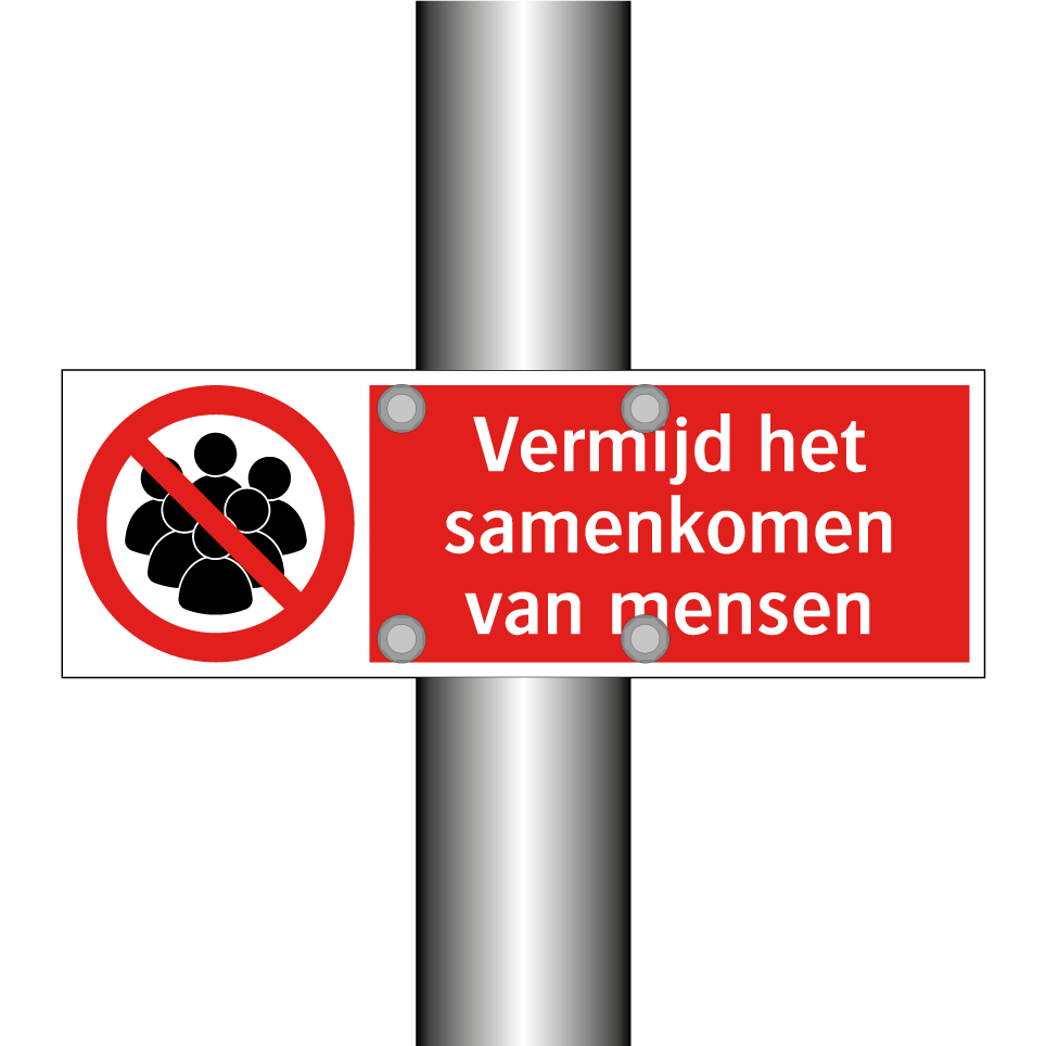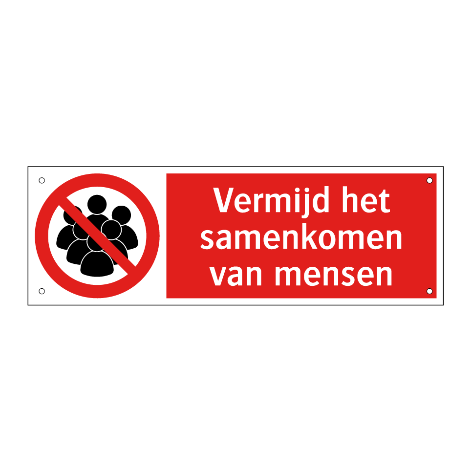 Verbodsbord met de tekst Vermijd het samenkomen van mensen