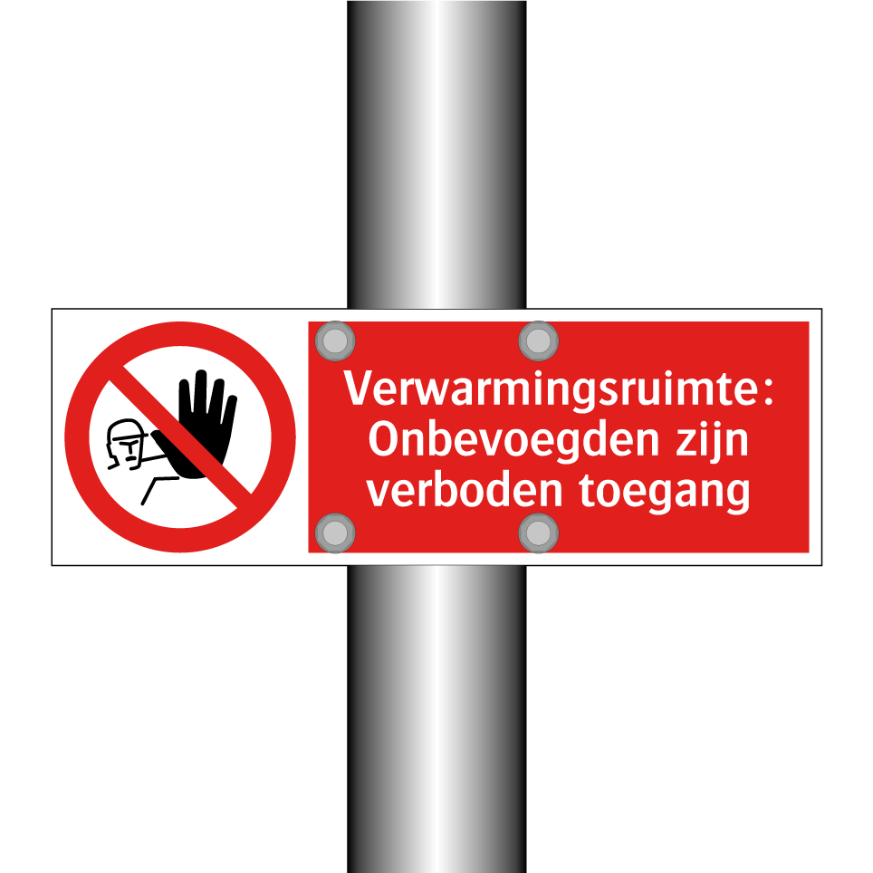 Verbodsbord met de tekst Verwarmingsruimte: Onbevoegden zijn verboden toegang