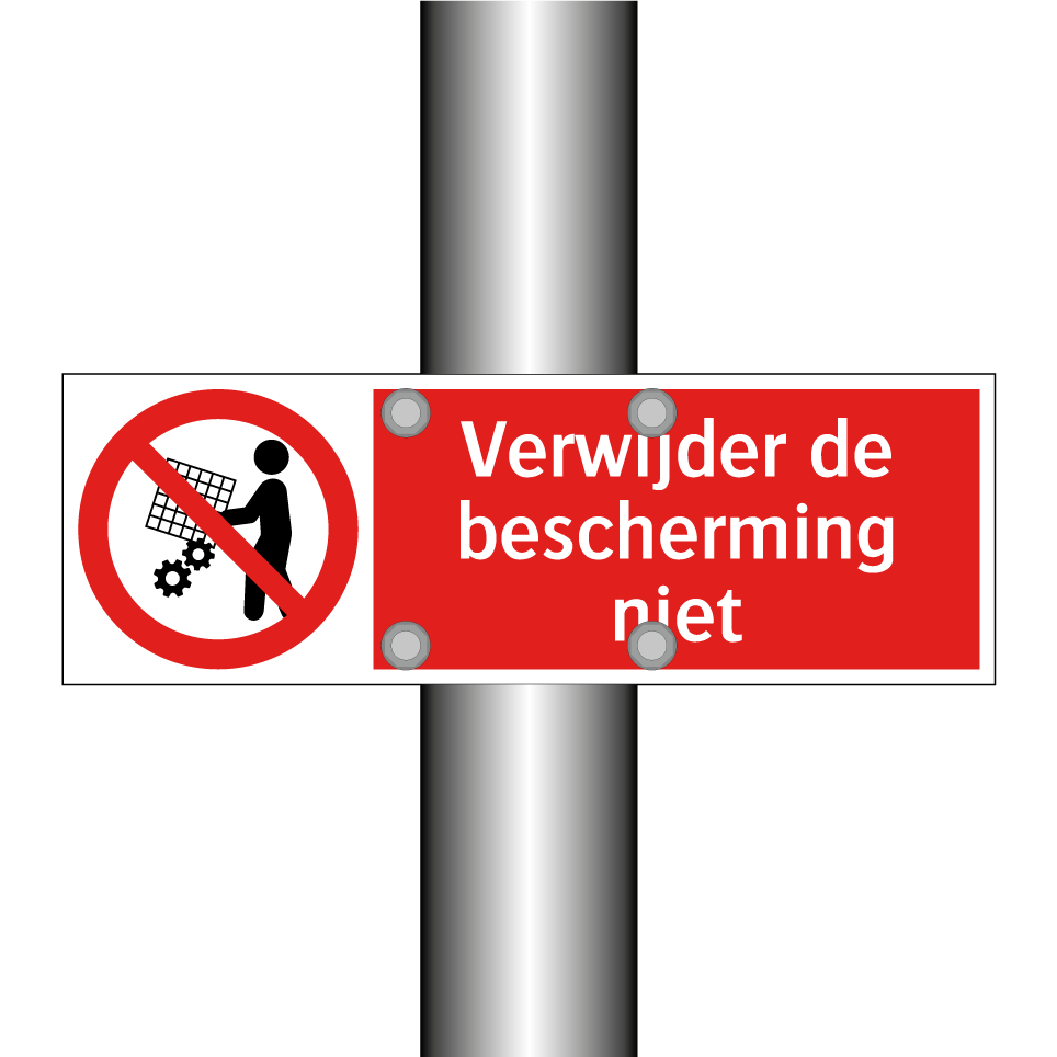 Verbodsbord met de tekst Verwijder de bescherming niet