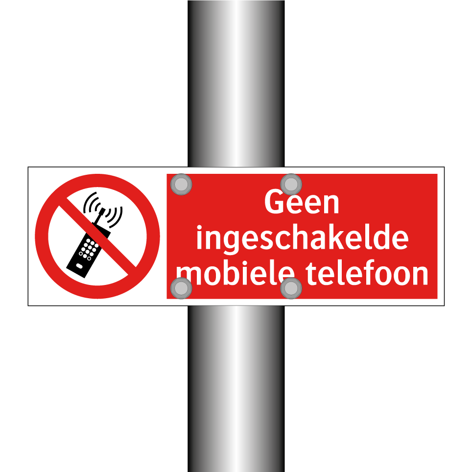 Verbodsbord met de tekst Geen ingeschakelde mobiele telefoon