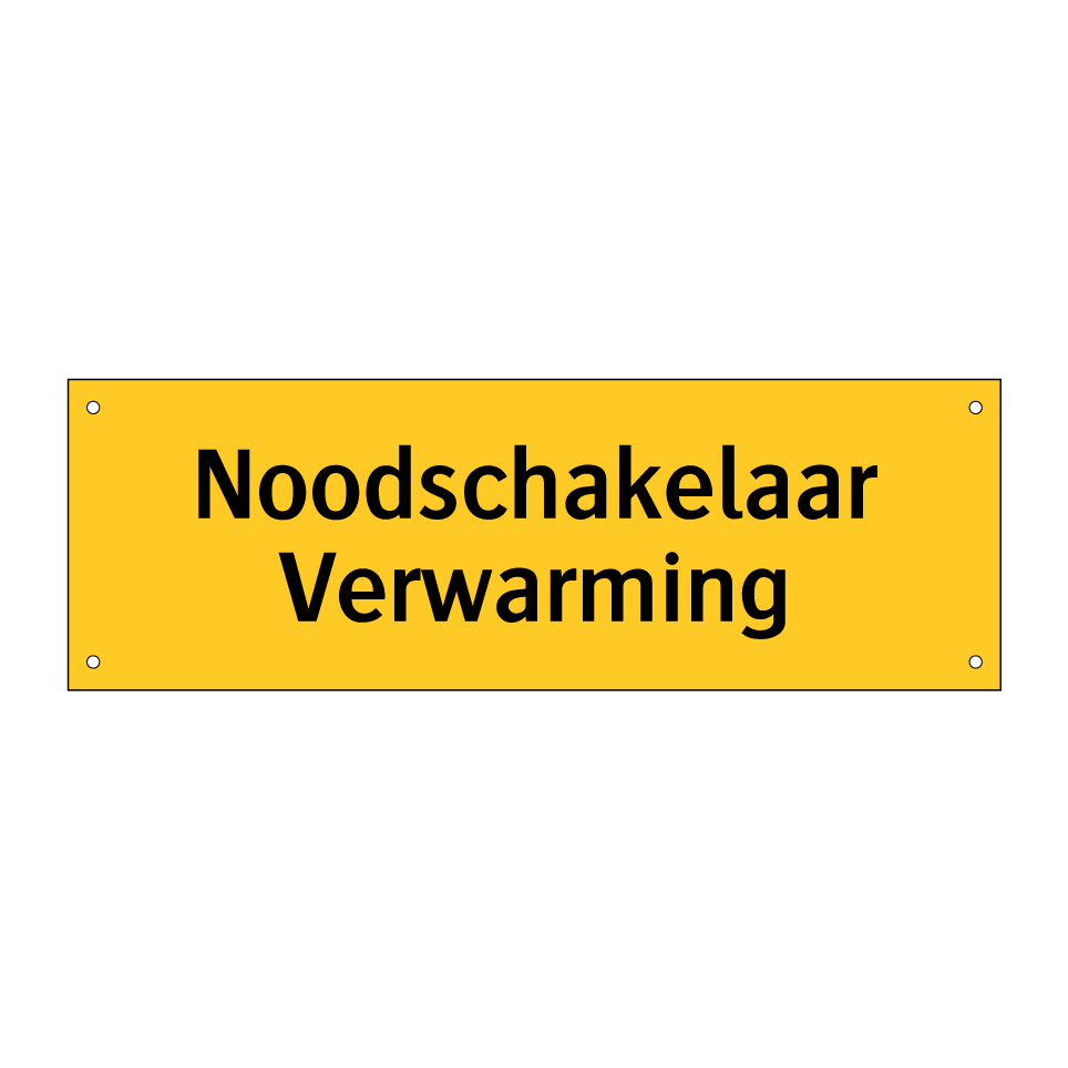 Waarschuwingsbord met de tekst Noodschakelaar Verwarming