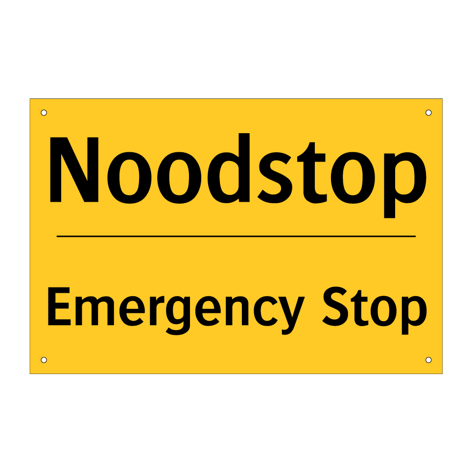 Waarschuwingsbord met de tekst Noodstop / Emergency Stop