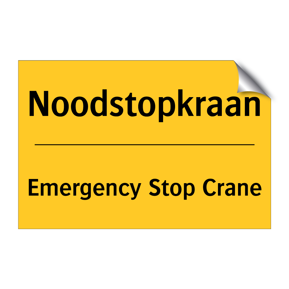 Waarschuwingsbord met de tekst Noodstopkraan / Emergency Stop Crane