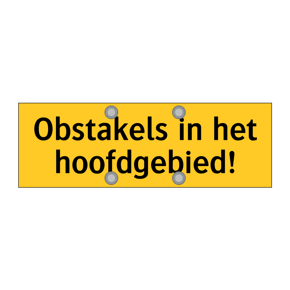 Waarschuwingsbord met de tekst Obstakels in het hoofdgebied!