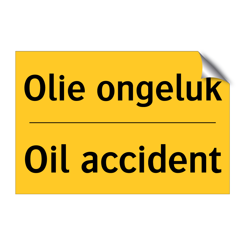 Waarschuwingsbord met de tekst Olie ongeluk / Oil accident